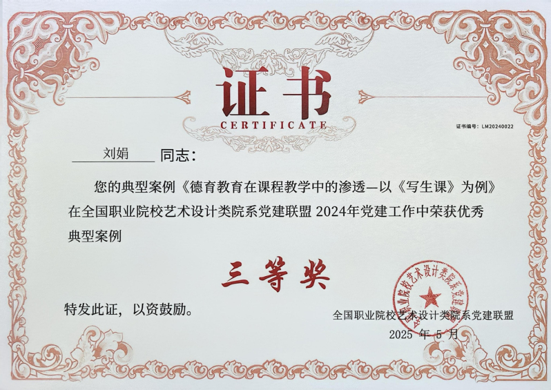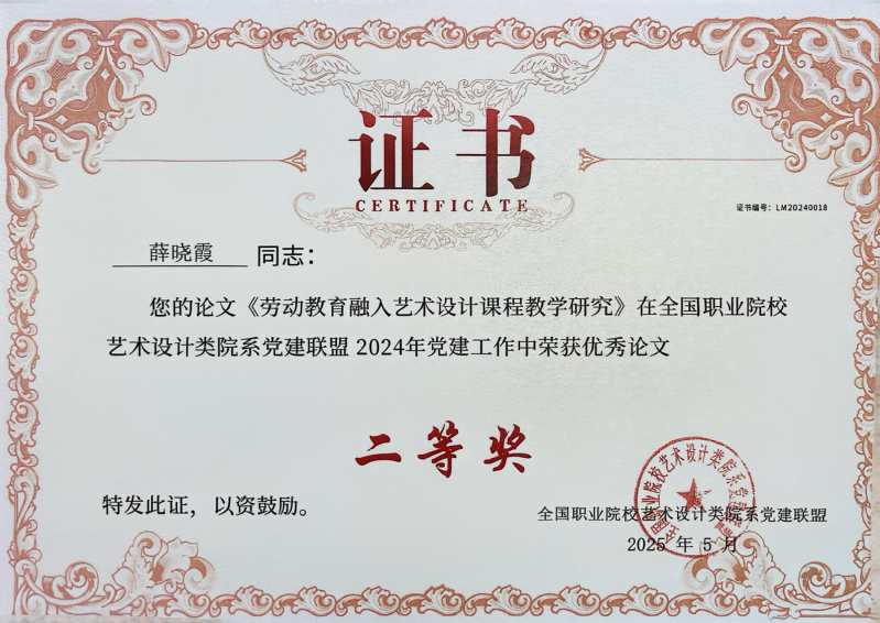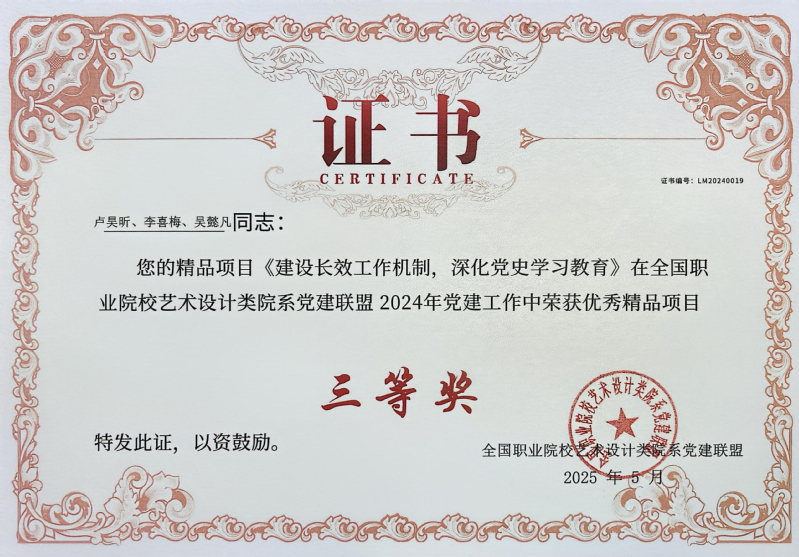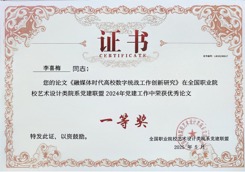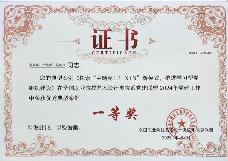 近日,从全国职业院校艺术设计院系党建联盟传来喜讯,在本次联盟发起的优秀党建工作案例、论文等征集活动中,我校创意设计学院教师团队表现优异,共斩获7项奖项(其中一等奖2项、二等奖3项、三等奖2项),充分展现了学院在党建工作方面的扎实成效,受到同类院系充分认可。