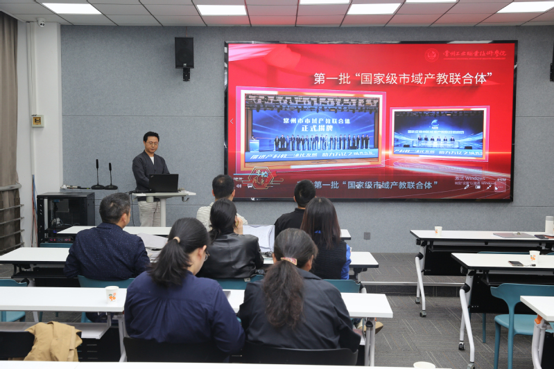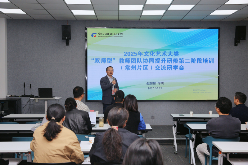 2025年10月24日下午,在学校人事处指导下,创意设计学院承办了2025年文化艺术大类“双师型”教师团队协同提升研修第二阶段培训(常州片区)交流研学会。会议在创意设计学院8130智慧教室举行,学校人事处处长夏冬,副处长陈雪华,培训项目负责人、苏州工艺美术职业技术学院工业设计学院副院长韦文波,培训项目班主任李启波博士、常州片区4个团队负责人及其成员参加,院长李方联主持。
