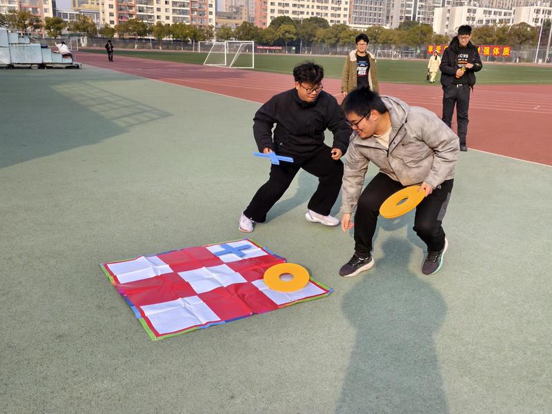 12月17日,“心灵氧吧”辅导员工作室在学校体育场成功举办“暖冬趣味同行”心理解压主题活动。同学们踊跃参与、沉浸其中,在欢声笑语中收获温暖与力量。“一圈到底”环节中,各小组队员手拉手围成圆圈,在不松手的前提下灵活调整肢体姿势,默契配合让呼啦圈顺利传递全程,现场欢呼声、加油声此起彼伏,在趣味竞技中锤炼了团队协作能力;“急速三子棋”借助超大棋盘和“复活卡”“提示卡”等趣味道具,让多人协作对抗赛充满欢乐与挑战;“暖心漂流瓶”环节,同学们将匿名祝福、冬日小确幸、励志寄语写入纸条,投入精心装饰的“漂流瓶”中,轮流抽取并大声宣读,一句句真挚的话语、一份份纯粹的善意,瞬间拉近了心与心的距离,让整个活动现场洋溢着温馨融洽的集体氛围,有效舒缓了学业压力与心理焦虑。