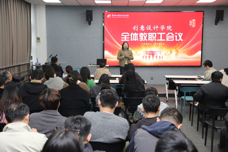 3月25日下午,创意设计学院在8130智慧教室召开了全体教职工会议,主要内容为政治学习与科研政策解读。会议由党总支书记祝燕芳主持,学院班子成员与全体教职工参加。