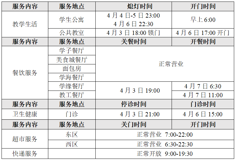 后勤服务安排(清明节)