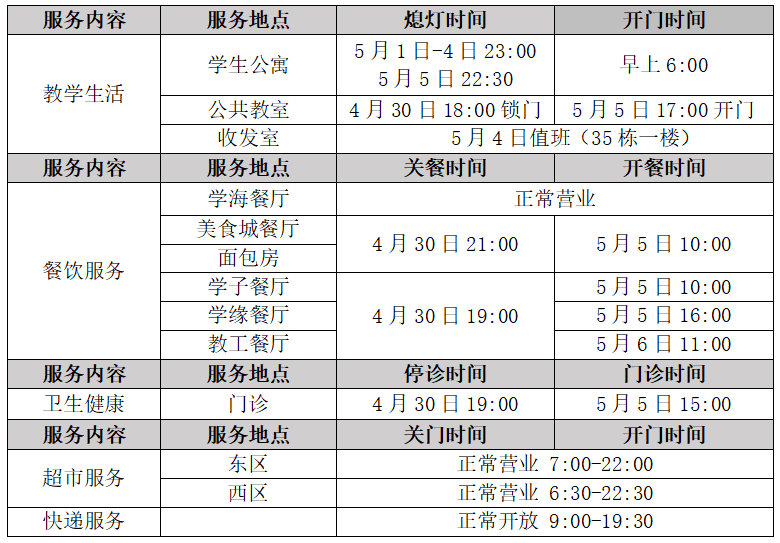 后勤服务安排(“五一”劳动节)