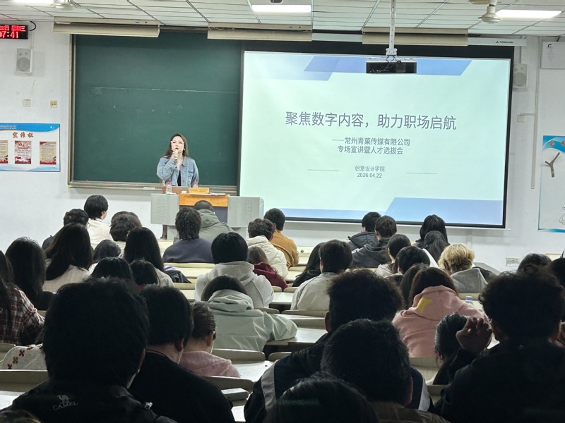 4月22日,青菓传媒文化有限公司总经理曹璐璐一行来创意设计学院举办专场招聘宣讲会,在9220教室举办,数字媒体技术教研室王志宇老师主持。此次活动吸引了创意设计学院150多名同学到场参加。