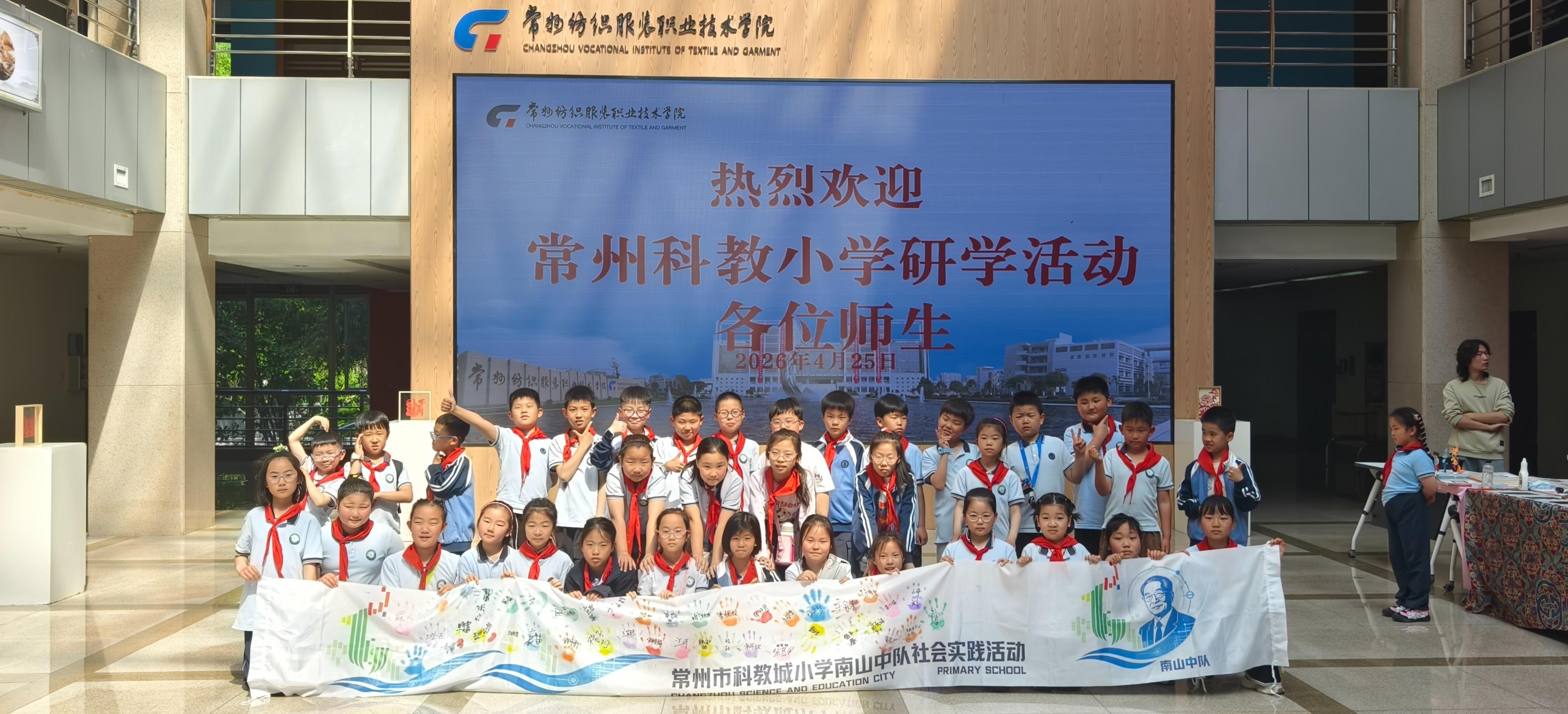 4月25日至26日,科教城小学组织三年级4个班级共100名学生,分两批走进常州纺织服装职业技术学院,开展为期半天的研学实践活动。本次活动以“探寻纺织起源,传承匠心文化”为主题,通过参观体验与动手实践相结合的方式,让孩子们近距离感受纺织科技与非遗技艺的魅力。