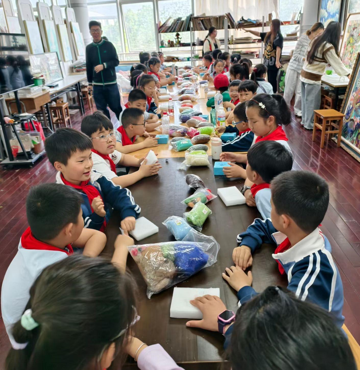 最受期待的环节当属手工体验。在学院专业教师和志愿者指导下,学生们分组参与了陶艺制作和毛毡画创作。陶艺课上,孩子们揉泥、塑形,虽然手法稚嫩,但专注的眼神里写满了认真;毛毡画工坊中,五彩羊毛纤维经过反复戳刺,逐渐变成憨态可掬的小动物或绚丽的花朵。三(1)班一名学生捧着自己制作的毛毡画兴奋地说:“我要把它送给妈妈,这是独一无二的礼物!”短短一小时的体验,不仅锻炼了动手能力,更让精益求精的匠心精神悄然扎根。