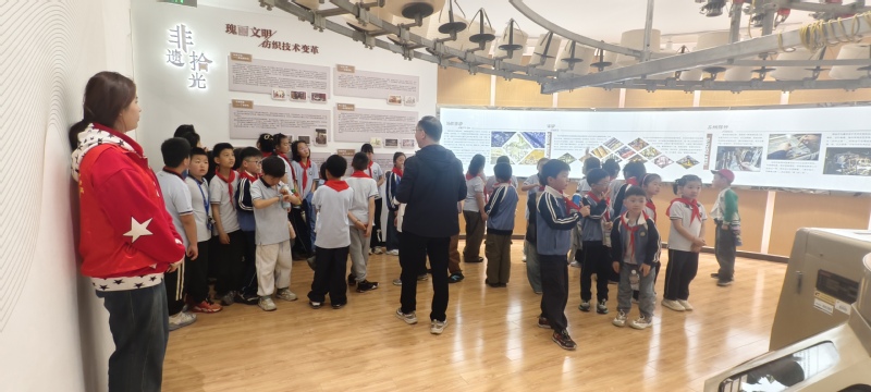 在常州纺院纺织科技文化馆,学生们跟随讲解老师的步伐,从手工纺车到现代智能织造设备,系统了解了纺织技术的演变历程。展馆内陈列着不同时期的纺织原料、织物样本以及特种纺织品模型,孩子们一边观察一边提问。“原来衣服不仅能保暖,还能做成防弹衣和人造血管!”一名学生惊叹道。通过实物展示,同学们深刻体会到“衣被天下”背后的科技力量。